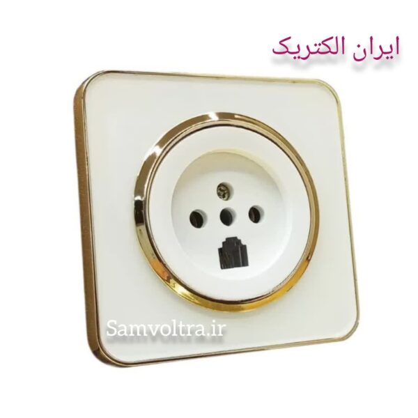 پریز تلفن دوکاره اسپادانا سفید طلایی با میانی بژ | دو کاره(ایران الکتریک)