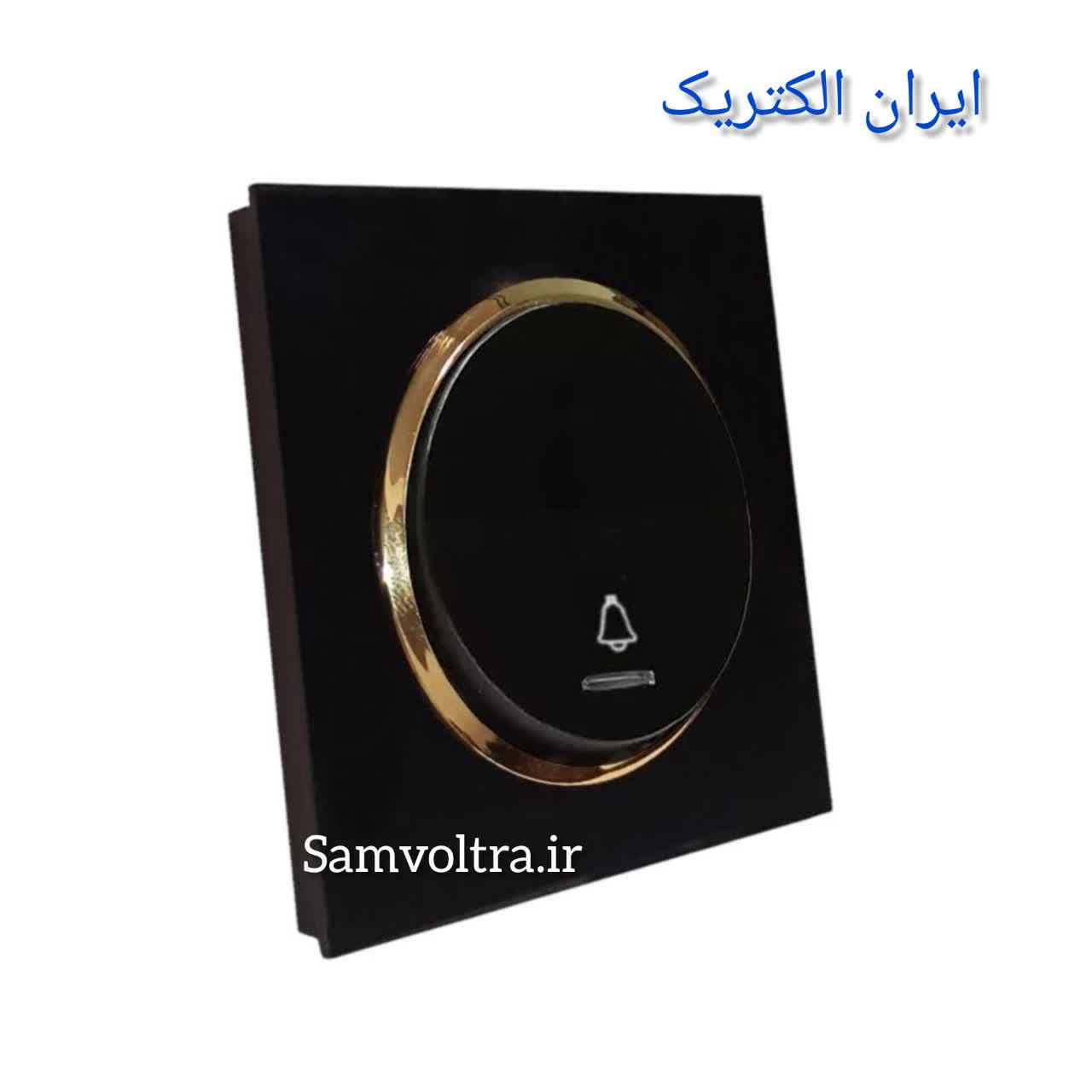 شاسی زنگ اسپادانا مشکی طلایی با میانی مشکی از برند معتبر ایران الکتریک، یکی از محصولات لوکس و باکیفیت در زمینه کلید و پریزهای دکوراتیو است.
