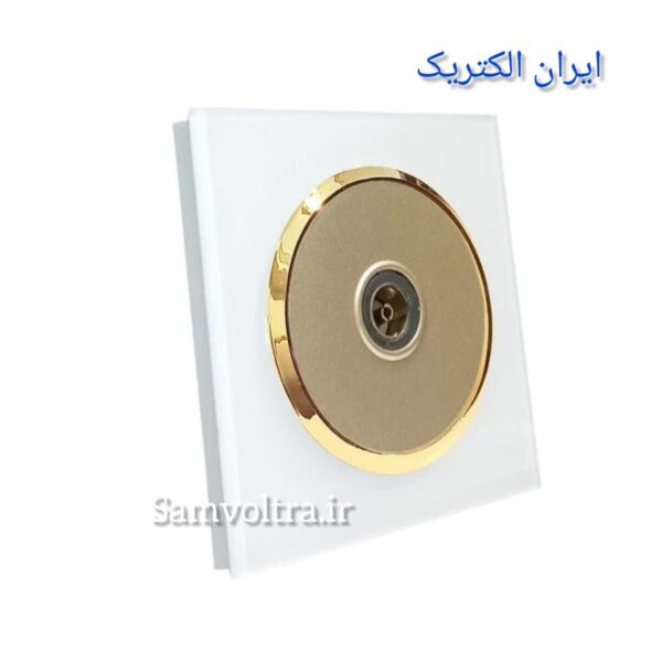فیش انتن tv اسپادانا سفید طلایی با میانی بژ از برند معتبر ایران الکتریک، یکی از محصولات لوکس و باکیفیت در زمینه کلید و پریزهای دکوراتیو است.