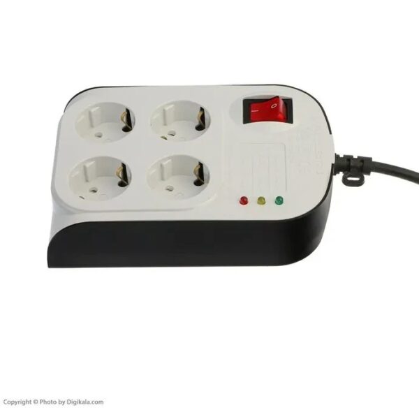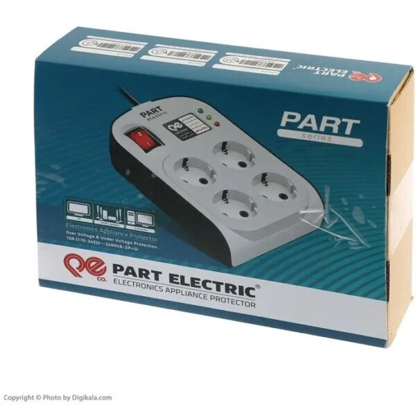 محافظ برق چهارخانه پارت الکتریک با طراحی جدید، مواد عالی و بدنه مشکی سفید وسیلهای جهت کنترلکردن میزان ولتاژ ورودی به داخل وسیلههای برقی است. این محافظ نوسان ولتاژ با مغزی سرامیکی و قفل کودک مناسب برای مصارف خانگی به عنوان محافظ ولتاژ لوازم صوتی و تصویری، لپ تاب، کامپیوتر است. این محافظ برق کامپیوتر دارای کابلی به طول ۱/۸ متر و روکش PVC نرم است. حداکثر توان خروجی این محافظ برق ۲۵۰۰ ولتآمپر و جریان خروجی آن ۱۰ آمپر است. لازم به ذکر است وجود ارت در این چندراهی سبب انتقال جریان اضافه برق به زمین شده و مانع از برقگرفتگی میشود.