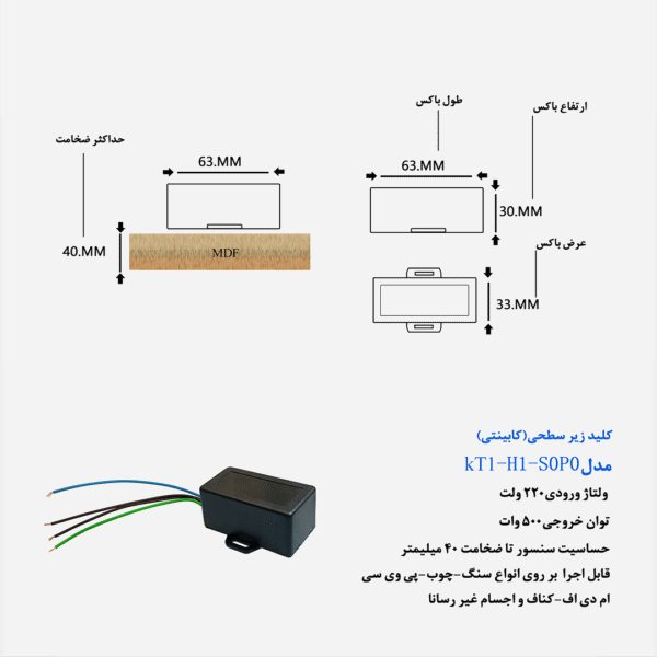با نصب کلید زیر سطحی در پشت سطوحی مانند چوب،شیشه،کناف،سنگ،mdf،پلاستیک میتوانید همچون کلید مکانیکی یک ابزار روشنایی را روشن و خاموش نمایید
